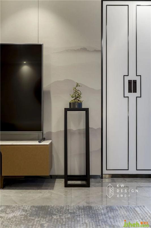 整體是中性灰色調(diào),墻面選擇中性淺灰色墻布,我們結(jié)合盧先生和劉小姐對(duì)生活的理解,以中國古典文化做背景。室內(nèi)設(shè)計(jì)師