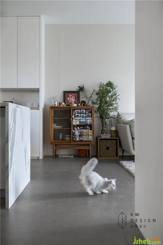 鞋柜旁邊的中古櫻桃木斗柜是這個(gè)空間的一劑美妙的調(diào)味品,為這個(gè)質(zhì)樸純粹的空間添加了詩(shī)意和浪漫。這是個(gè)有愛(ài)的小角落,斗柜里放著一起旅行時(shí)買(mǎi)回來(lái)的各種紀(jì)念品,各地的明信片,還有洋溢著幸福甜蜜的相片...原來(lái),詩(shī)和遠(yuǎn)方就在家里啊。