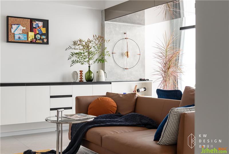 4:充分利用寬闊悠長的過道,前部分納入客廳,后部分還有整面的墻柜,除各個空間都有收納空間外,此處是全屋的集中收納。