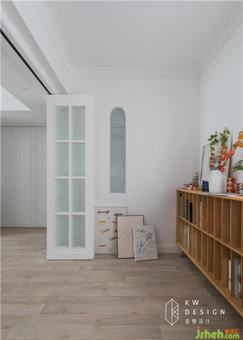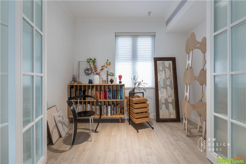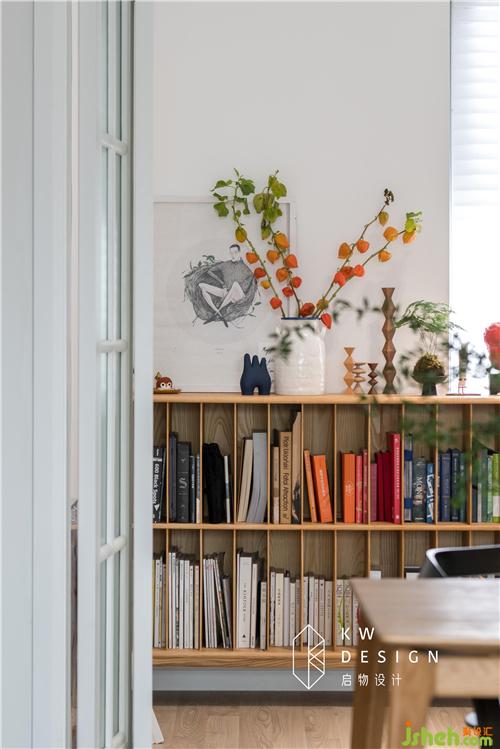 如秋葉靜美的陽光房也是多功能室,收納著太太喜歡的書籍,海外看展、逛博物館背回來的小展件,朋友來家畫的、送的畫。