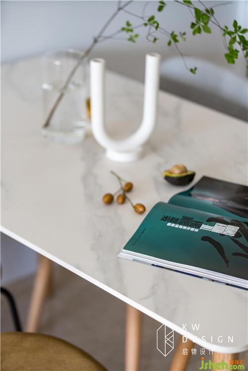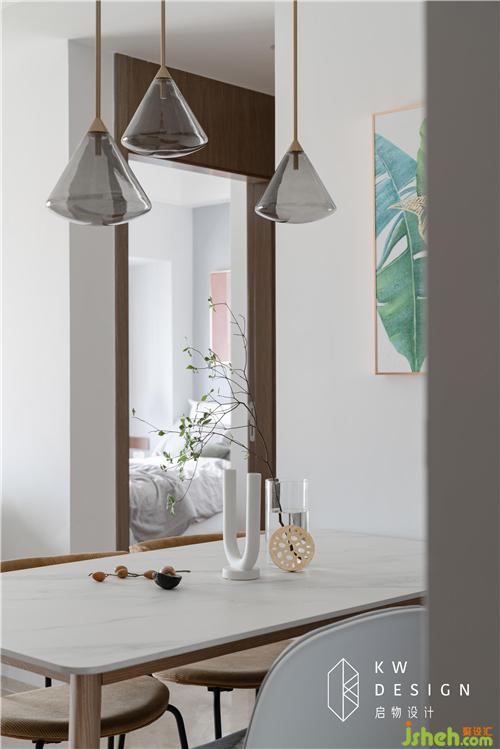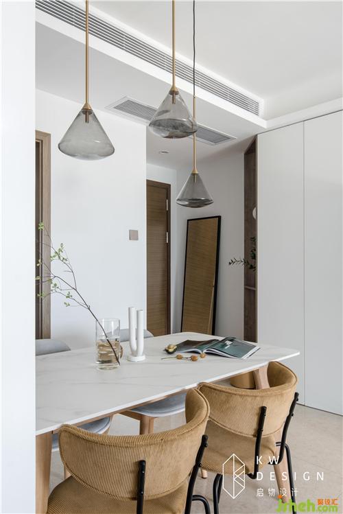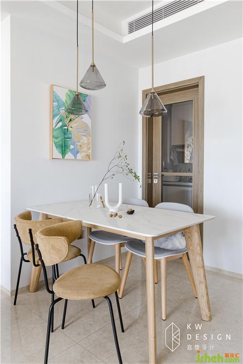 木色溫潤(rùn),爵士白清爽,燈芯絨沉靜,黑色跳躍。餐廳的配色和材質(zhì)選用絕了。室內(nèi)設(shè)計(jì)師大面積原木色給予視覺的舒適。靜與動(dòng)、黑與白,方形和圓形的碰撞,是藏在舒適下的靈動(dòng)。