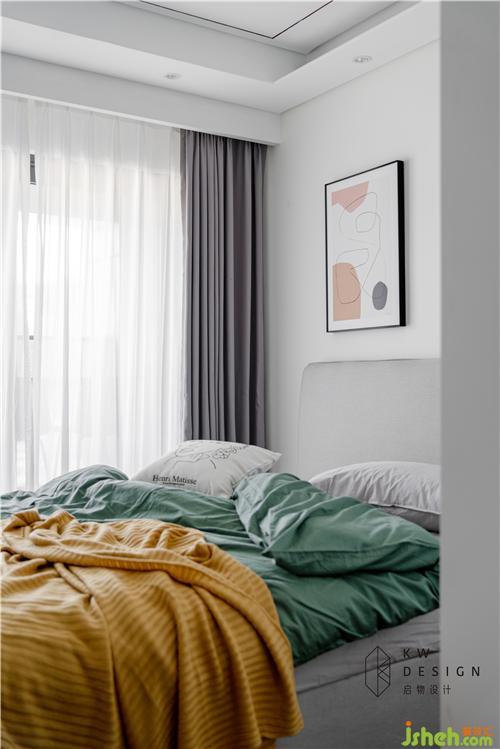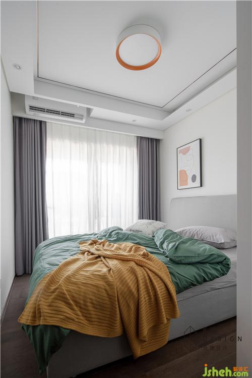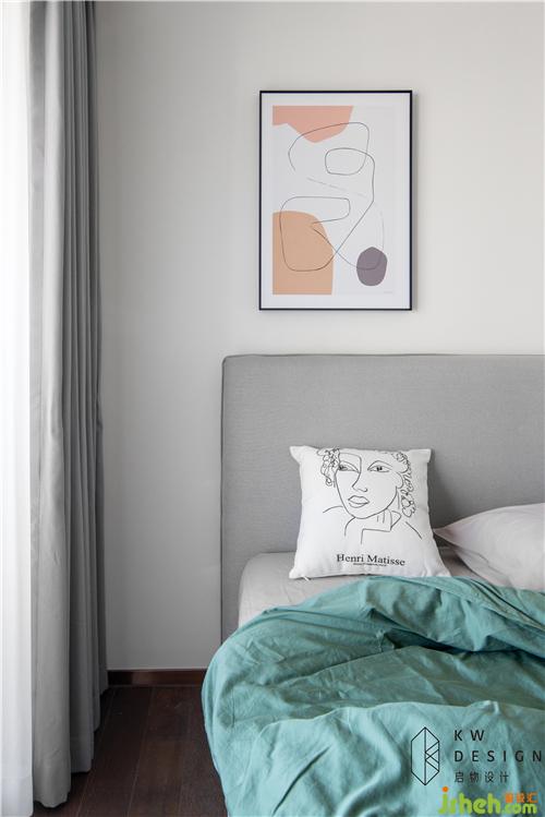 以灰色系打造素雅基調(diào),利用床品增加色彩,營造簡約清新的舒適空間。