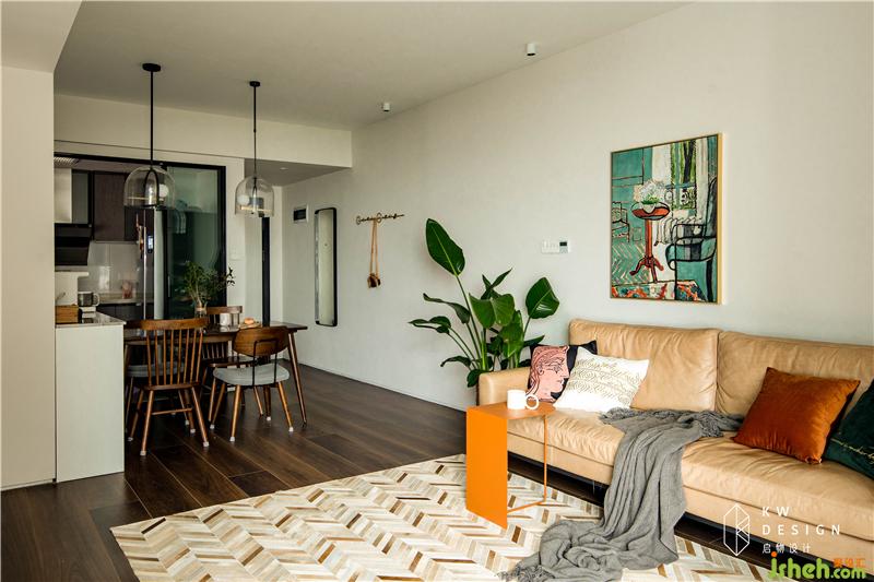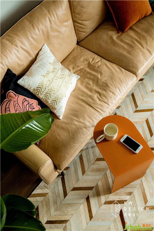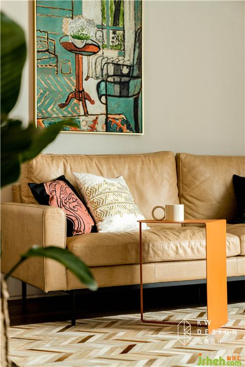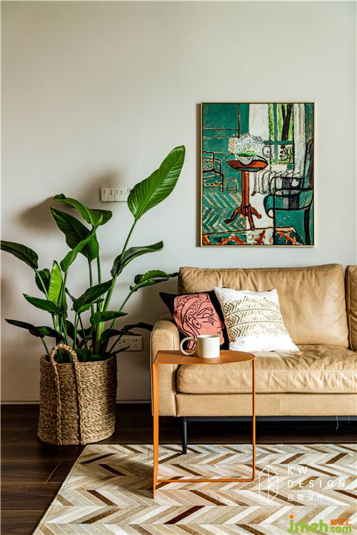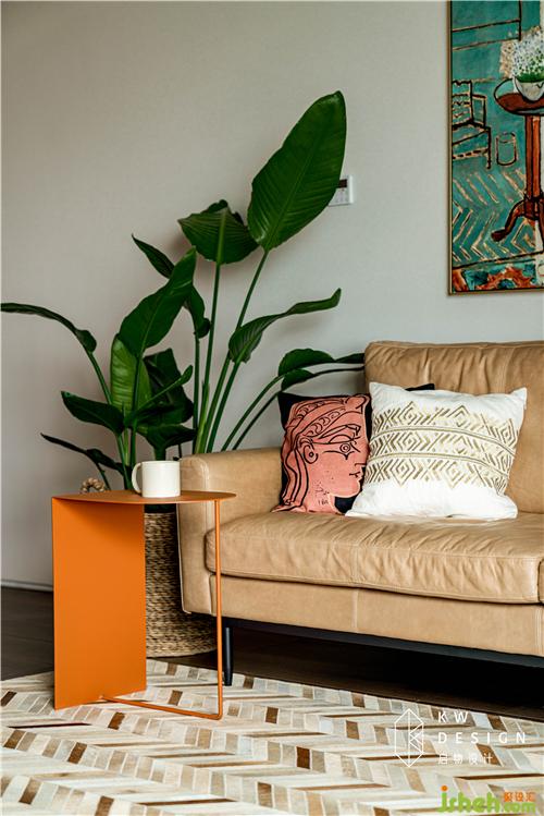 高級的愛馬仕橙和鮮嫩的綠植提高了空間色彩飽和度。