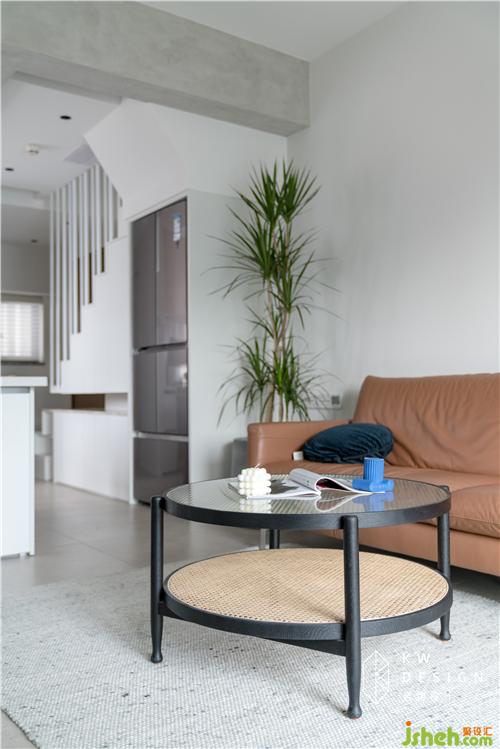 作為廳的中心位,大部分茶幾無形中切割了寶貴的視覺空間,選用長虹玻璃和八角藤編的通透材質(zhì)帶來理想中的靈動(dòng)。