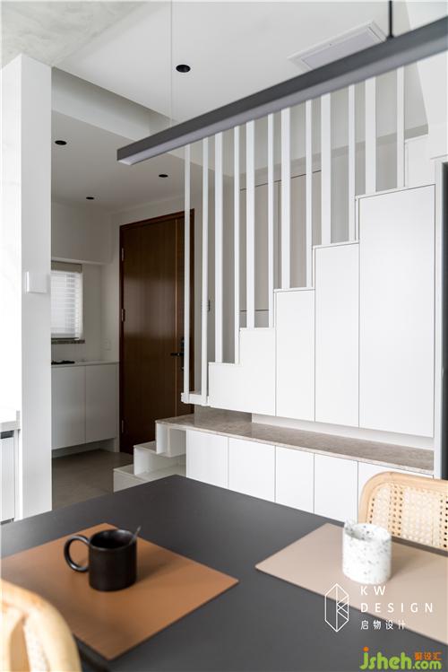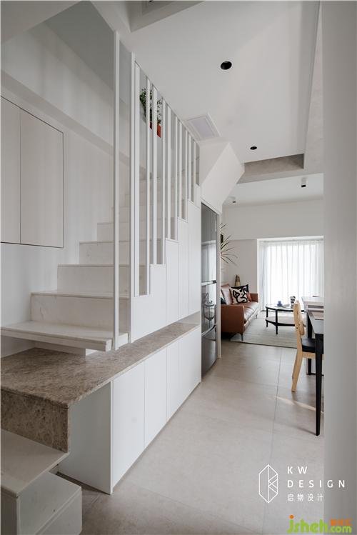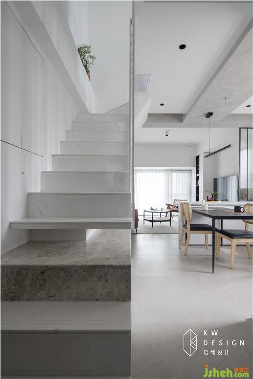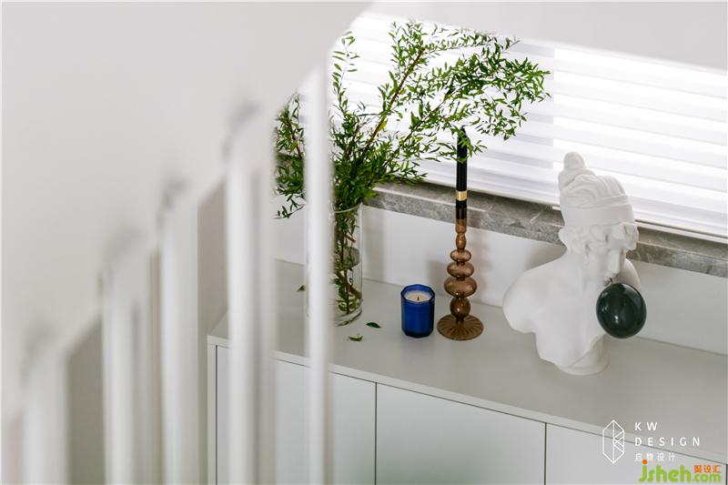 兼具使用功能與美學(xué)的樓梯是整個(gè)空間里有調(diào)性的藝術(shù)品,彰顯主人優(yōu)雅氣質(zhì)。
