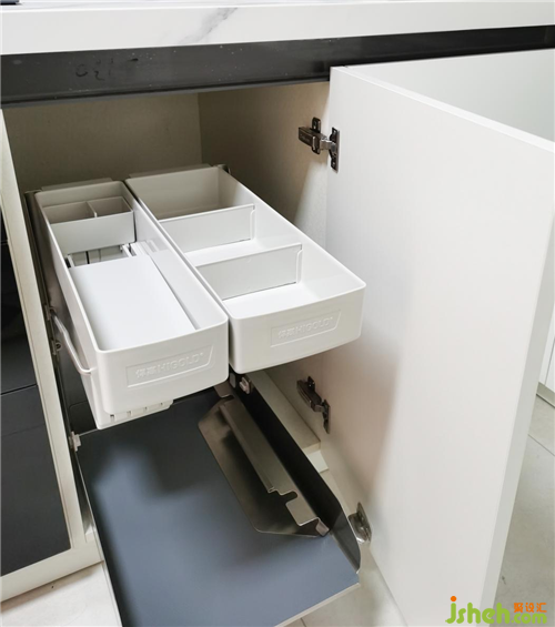 爐灶右下方做聯(lián)動(dòng)拉籃,放調(diào)料瓶。