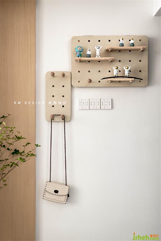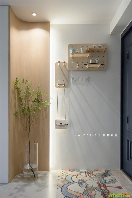 保證進(jìn)門的簡潔開闊感,墻面利用洞洞板做簡單的收納,深圳家裝設(shè)計(jì)遮住電表箱,同時可隨手?jǐn)R置包包或外套。