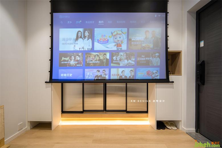 巧妙安置的投影儀,解決了電視墻的問題,超大屏幕,居家幸福值上升。合理距離維護(hù)雙眼的健康。