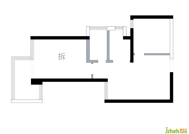 3:廚房墻面往衛(wèi)生間移,擴(kuò)大空間,原來的L型廚房可以改成u型廚房,有了切菜區(qū),也有了冰箱安置區(qū)。內(nèi)藏式推拉門不會(huì)影響室內(nèi)動(dòng)線。