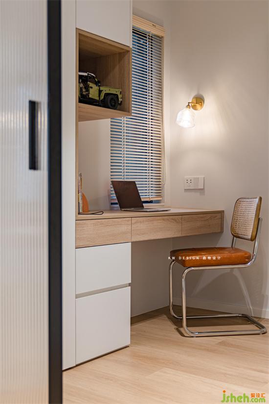多功能房增設(shè)收納柜,彌補(bǔ)收納不足的缺陷,書籍、收藏品、日常用品均可安置在此處,靠窗一隅的書桌搭配皮椅、明亮壁燈。家裝設(shè)計(jì)學(xué)習(xí)、工作氛圍也是滿分的。