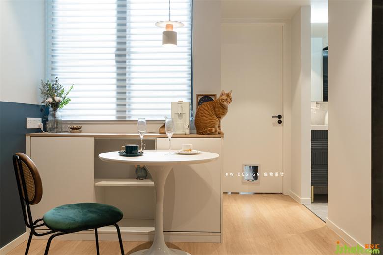 排除方形餐桌,改用圓形餐桌,不僅空間更開放,貓咪活動(dòng)無死角。而且小資閑逸情調(diào)調(diào)起來了。