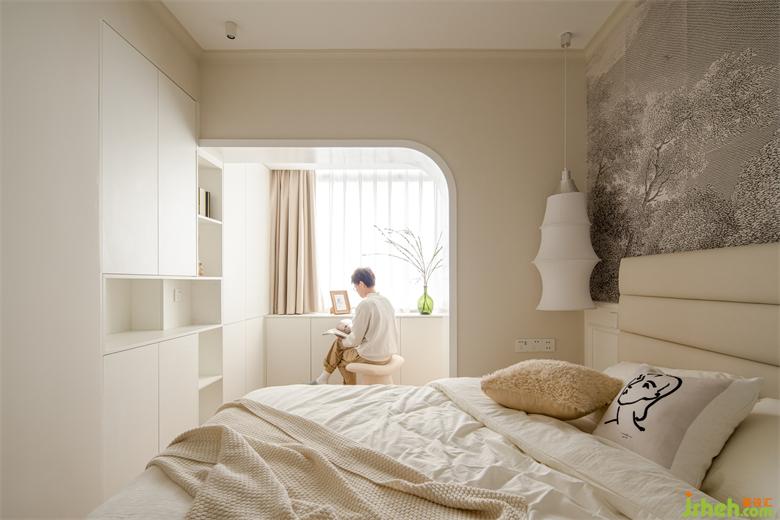 以拱形門洞連接臥室和小陽臺,白色包邊連接柜體,景新花園家裝設(shè)計(jì)功能形式的統(tǒng)一弱化結(jié)構(gòu)和邊界感,空間顯得更加通透舒適。