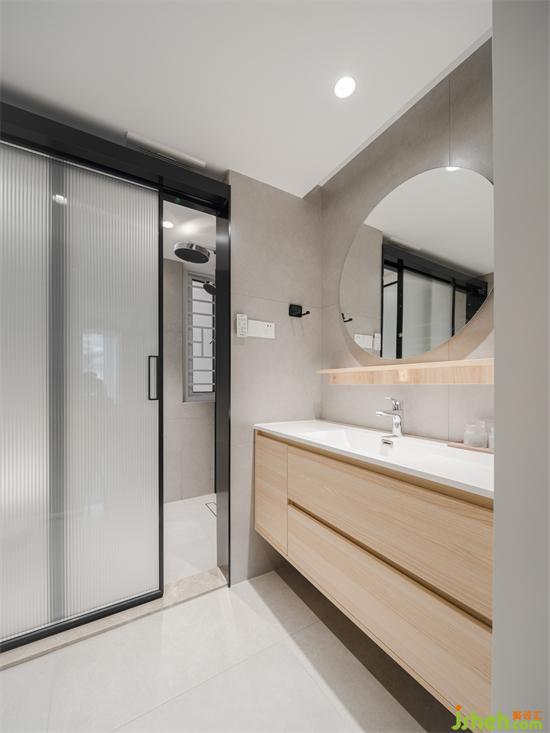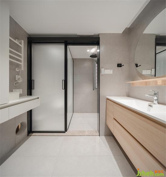 淋浴和馬桶區(qū)共用一扇移門,節(jié)省空間同時(shí)也滿足了日常使用。