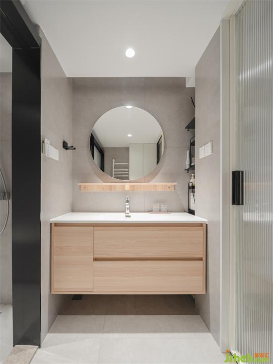 兩位女主人的衛(wèi)生間也尤其注重收納,1.2m的浴室柜搭配內(nèi)嵌壁龕使用,金桂大廈家裝設(shè)計(jì)對面還有一排立柜可以囤衛(wèi)浴用品,收納抽屜增加平臺可以放置隨取隨放的護(hù)膚品或者清潔儀器。