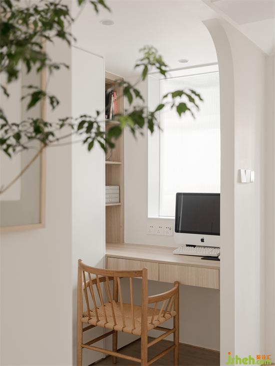衣帽間靠陽臺(tái)處開窗洞設(shè)長虹玻璃為書房引進(jìn)光線,阿姨在這里使用電腦或?qū)憰ā?