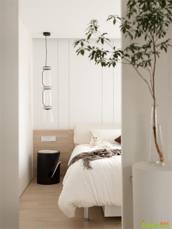 騰挪了衣柜的位置,床榻兩邊得以釋放寬敞的活動(dòng)空間。