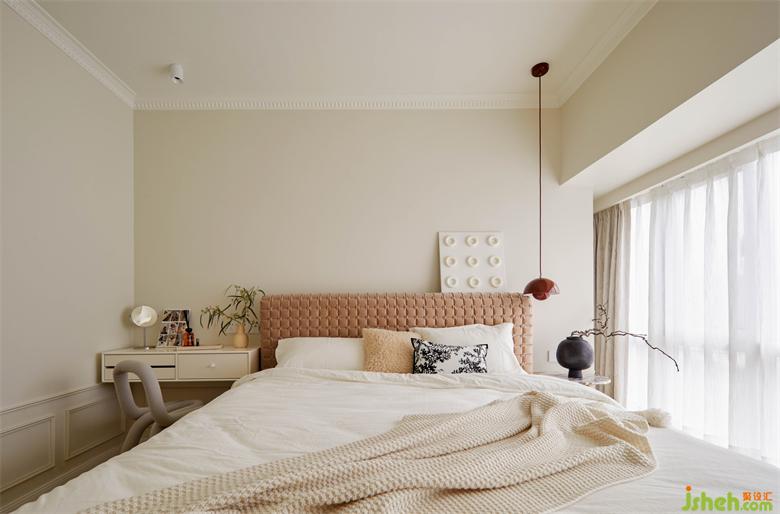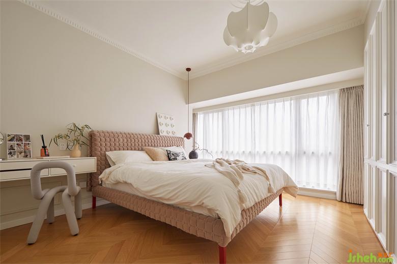 以軟裝烘托意境來(lái)打造輕法式浪漫。一張獨(dú)特又溫柔的Ruche床,一盞夢(mèng)幻復(fù)古的裝飾吊燈就能圍合個(gè)性又溫馨的睡眠區(qū)。