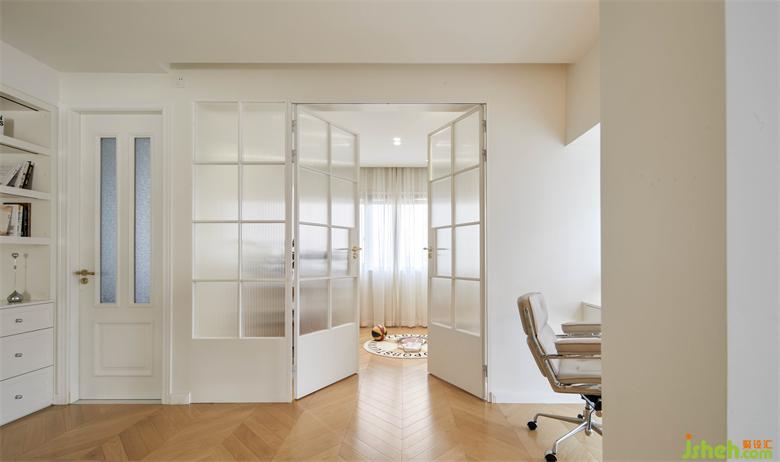 靠近兒童房做整墻收納,上半部分開放格收納書籍,下半部分帶柜門收納小朋友的玩具和其他雜物。多功能房打開與外部空間連成一片,開闊舒適的活動(dòng)區(qū)承載豐富的育兒場(chǎng)景和休閑娛樂(lè)需求。