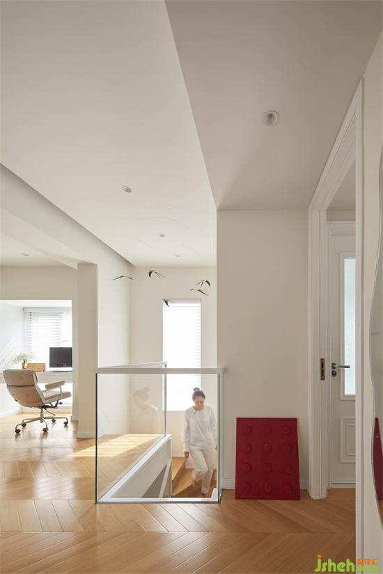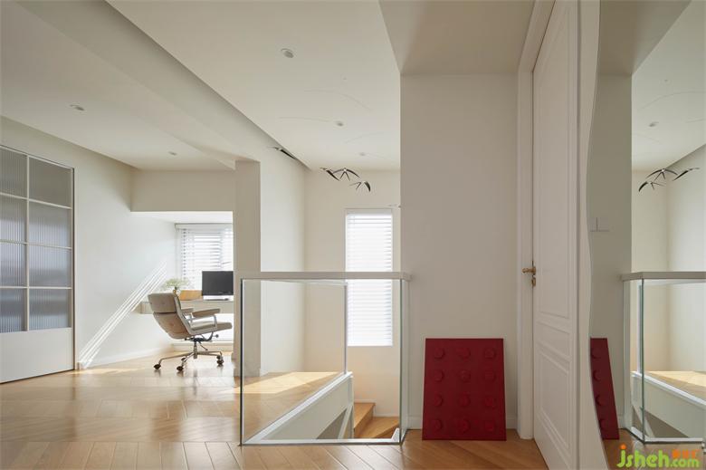 靠窗凹位定制書桌作為羊羊和先生臨時(shí)辦公的區(qū)域,旁邊空位預(yù)留壁燈作閱讀角。佳兆業(yè)悅峰復(fù)式裝修設(shè)計(jì)紅色裝飾點(diǎn)綴能很好調(diào)動(dòng)小朋友的情緒,增加活力。兼具陪伴與互動(dòng)的空間幫助小朋友成長(zhǎng)。