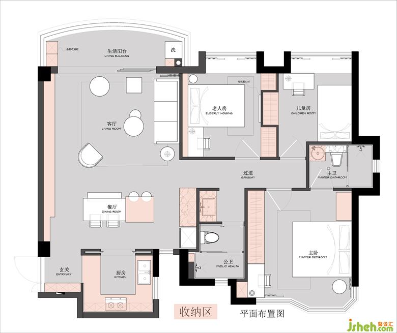 ?長(zhǎng)輩房與兒童房的收納由輕質(zhì)薄墻相互借位實(shí)現(xiàn)獨(dú)立功能。