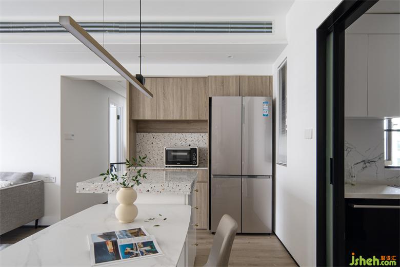 島臺(tái)作為用餐功能時(shí)與餐桌整體跨度兩米多,可以滿足多樣化的用餐形式以及更多人員的配置需求。