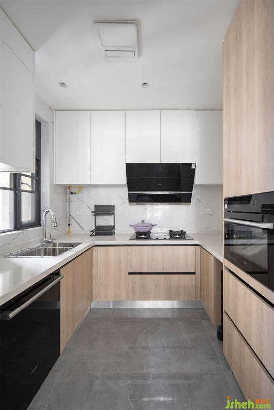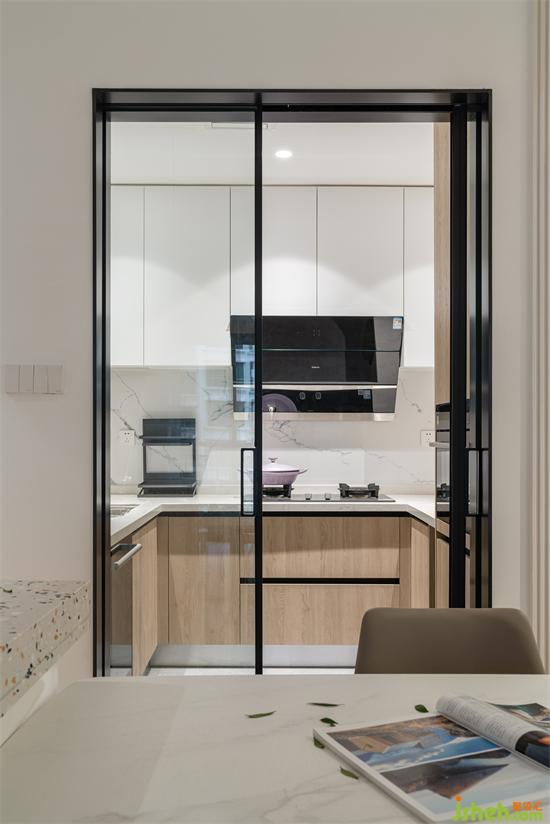 尹哥一家是喜歡爆炒的湖南人,所以還是保留了推拉移門,深圳豪峰園家裝設(shè)計(jì)可以保證相對獨(dú)立的烹飪空間,采用窄框清波的材質(zhì),不阻礙空間視線,營造通透的半開放格局。