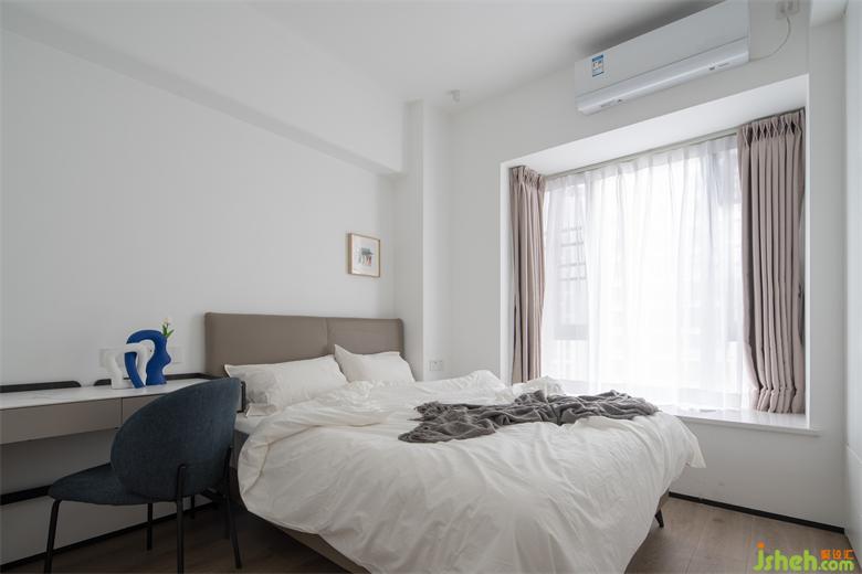 長輩房由沉穩(wěn)灰營造簡約素雅氛圍,深圳豪峰園家裝設(shè)計小幅的人物插畫增添活潑趣味。