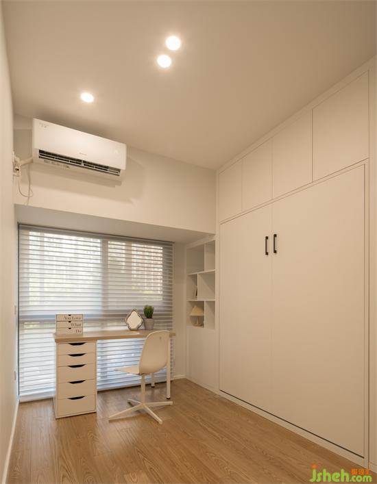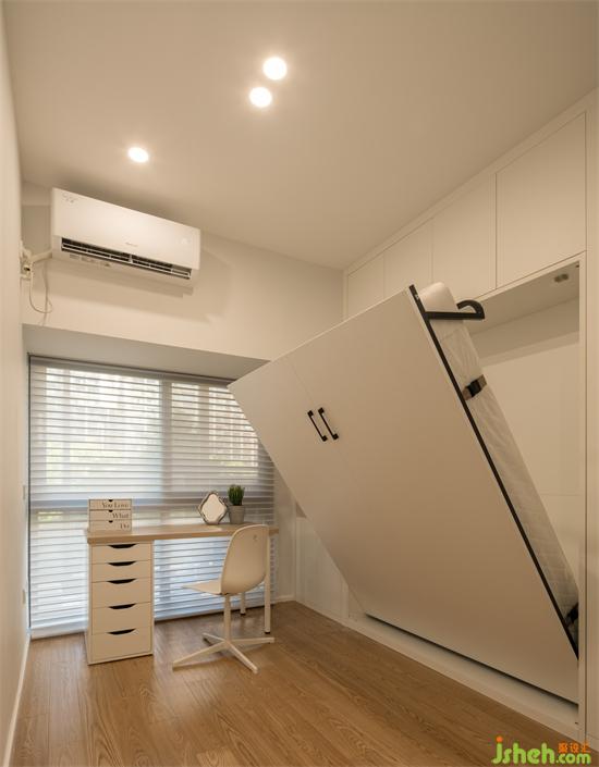 多功能房兼臨時(shí)客房,選擇了1.5m上翻折疊床,平時(shí)收起來騰出活動空間,可辦公或者其他休閑活動。