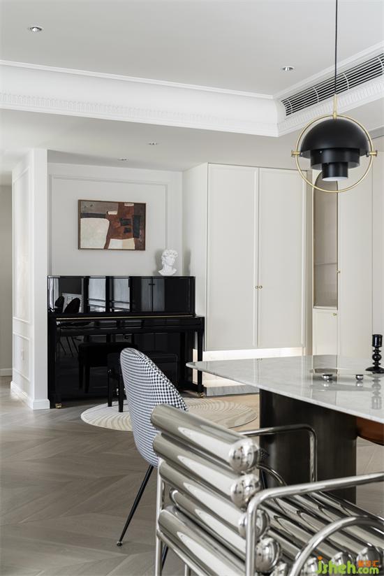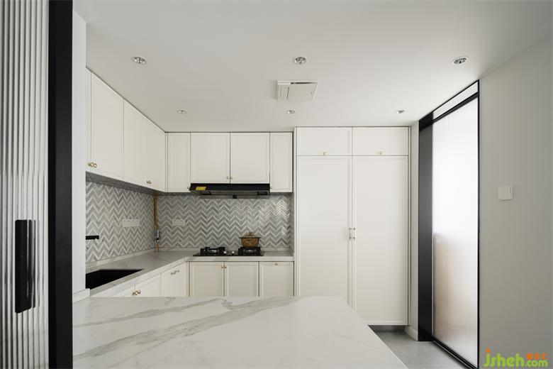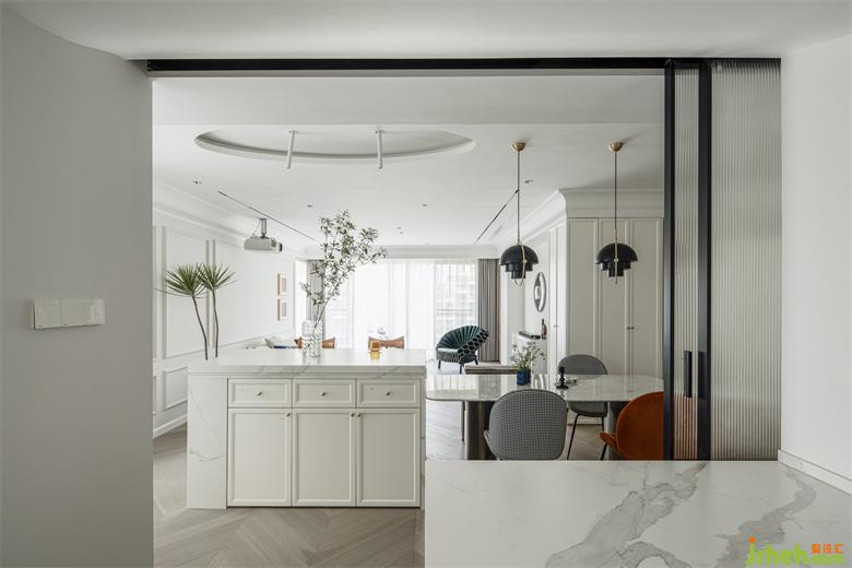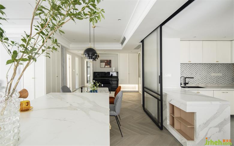 廚房的推拉移門解決烹飪習(xí)慣和美觀需求,南山蘭溪谷家裝設(shè)計(jì)同時(shí)能實(shí)現(xiàn)封閉,半開放及完全開放的多空間形態(tài)。