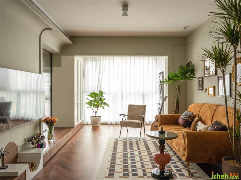全屋以胡桃木與淺綠色兩種源自森林里的顏色為主色調(diào),碰撞出原始又迷人的復(fù)古質(zhì)感,點綴金屬配飾營造輕奢復(fù)古的精致浪漫。