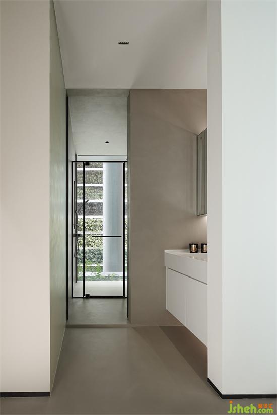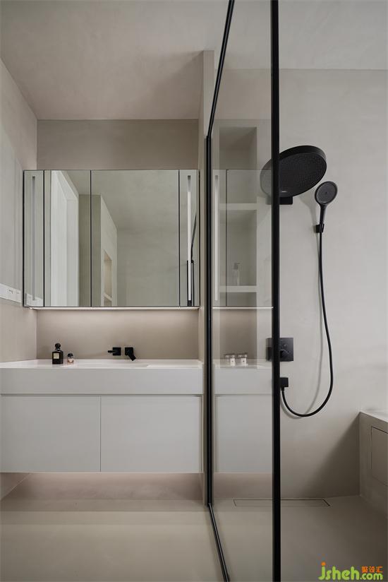 鄰建筑群的一面是小區(qū)階梯式垂直綠化,開闊的格局為室內(nèi)引入不同的治愈景觀,海府壹號家裝設(shè)計微水泥通刷的三分離衛(wèi)浴空間盡顯簡約質(zhì)感和格調(diào)。