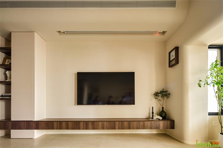 小婉子在需要的居住功能表里特別強調(diào)需要充分但不壓抑的收納,所以在兼具視聽和娛樂功能的電視墻面上并沒做太復(fù)雜的設(shè)計,瀚海東岸家裝設(shè)計懸挑抽屜收納休閑空間的物品,半高的平臺位置還可做展示臺,投影儀與電視機(jī)同時滿足多樣的娛樂需求,提升居住幸福感。