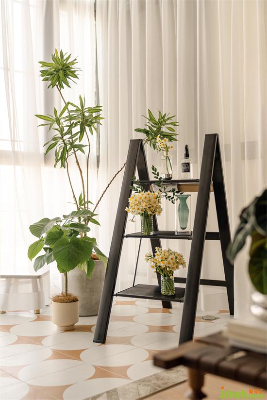 陽臺鋪了小花磚,一邊設(shè)置了洗衣伴侶,另一邊是綠植小天地,擺弄花草,感受生機享受自然也是小兔自愈的美好時光。