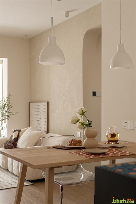 餐椅是現(xiàn)代和中古的搭配,家裝設(shè)計亞克力材質(zhì)讓空間模糊了界限。