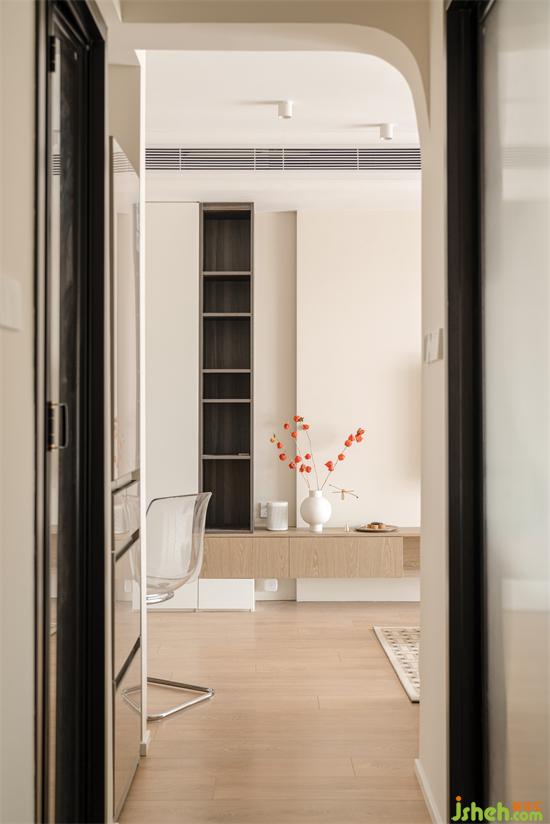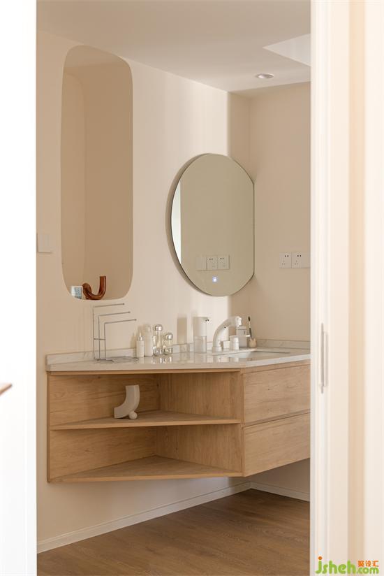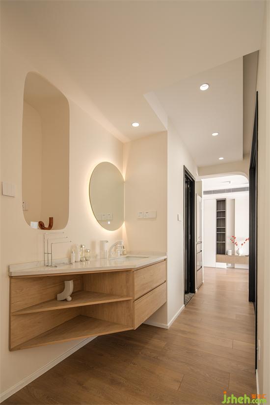 弧線的協(xié)調(diào)給人能帶來一種獨(dú)特的、百看不膩的永恒美感。家裝設(shè)計(jì)搭配圓形鏡面的拱形壁龕增加空間造型感的同時也消弭異型切角的冗余。
