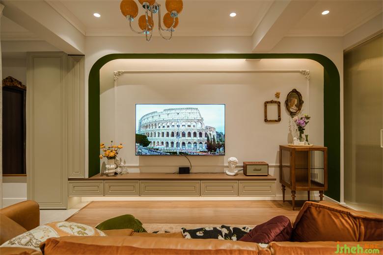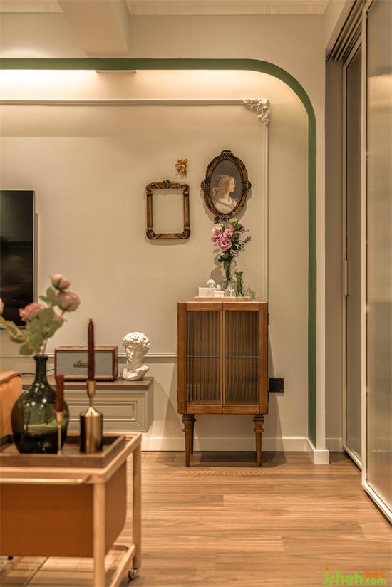 電視墻的收納并沒做滿,右邊的適當?shù)牧艨?,可以讓MIA根據(jù)不同心情和喜好置辦展示端景。怡楓園家裝設計裝飾畫很有復古宮廷韻味,一個精致斗柜或者一把椅子,就可以撐起一處極具藝術氛圍的文藝角落。
