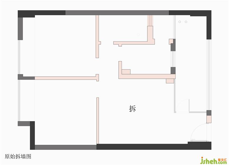 2. 規(guī)避公衛(wèi)門直對著公共過道,改門為東邊朝向,在兩邊過道盡頭分別設置了不同端景形式,使公共空間的視覺審美得以完整連貫同時也保證了洗浴空間的私密。