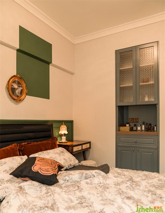 屋子里花的形式豐富多樣,斗柜上,餐桌邊,書桌旁,邊幾里以及窗紗和柜門上。怡楓園家裝設(shè)計海棠玻璃和復(fù)古調(diào)的柜子很搭。