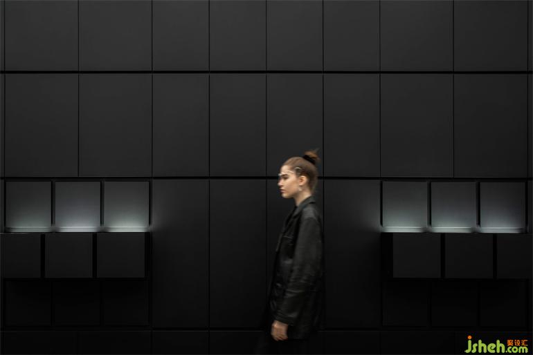 KVK產(chǎn)品概念中存在很多關(guān)于“沖突”、“意識(shí)覺醒”、“侵略性”、“尖銳”的元素。因此,空間概念店設(shè)計(jì)中選擇了明暗、深淺、質(zhì)感不一的材質(zhì)、配色,通過鏡面的延伸,來表達(dá)品牌內(nèi)核中“沖撞”的意識(shí)形態(tài)和美感。