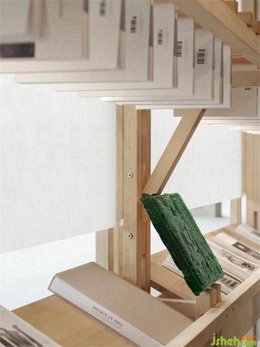 In the spatial circulation planning, we have divided the space into different sections with various content and presentation styles. Among them are displays of artworks and exhibitions from different artists, offering an immersive experience for visitors to browse and explore. When they further step into the space, they will come across a relatively independent area where previous issues of the Design Anthology magazine are displayed on traditional magazine racks. In addition to the conventional reading experience, we have incorporated small material board installations into the magazine rack, creating a more multi-dimensional experience through the presentation of different textures and facets of the display. Clearly organized and easily accessible.