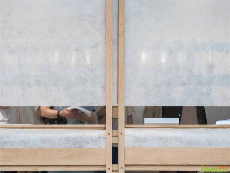 和紙材質(zhì)一以貫之,成為切割空間內(nèi)里,連通不同內(nèi)容模塊的Keywords。