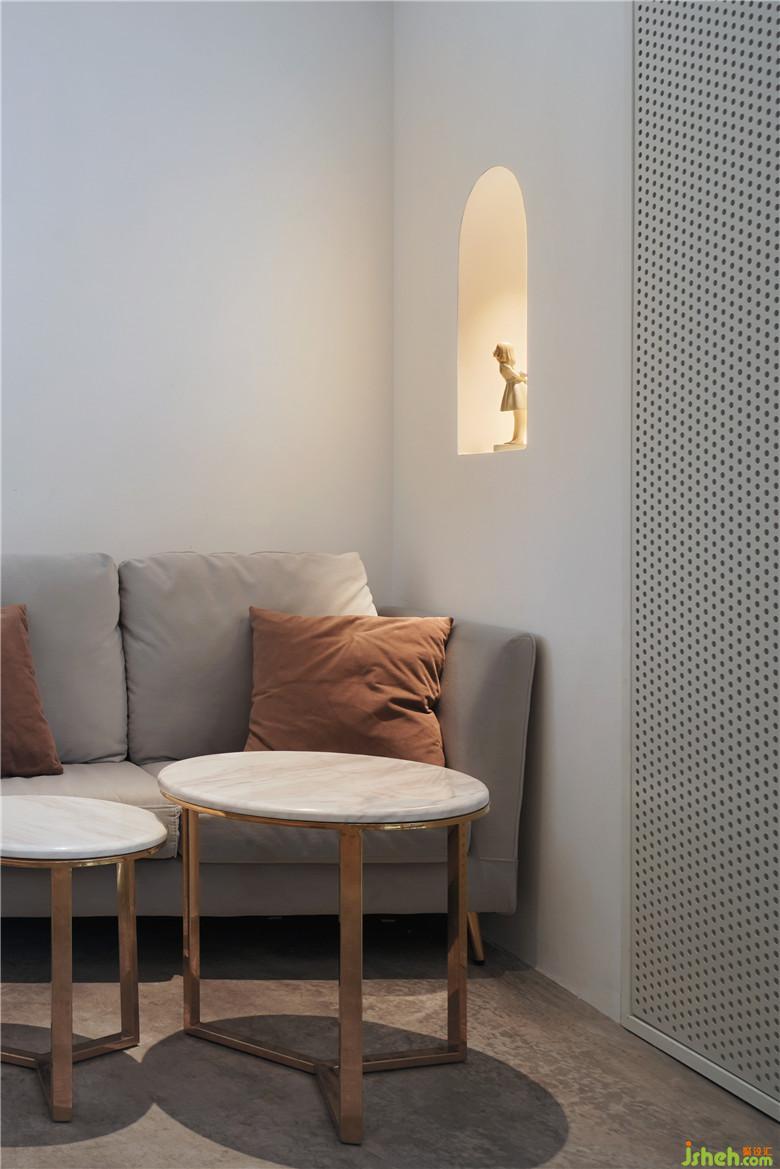 主色調(diào)明顯凸出整體空間的時尚感,傳遞出一種輕奢的氛圍:粗獷的地面、玫瑰金色細線條、精美的檬薄荷綠燈飾、粗獷與精細的碰撞,點綴來營造最佳視覺效果,把生活美麗的呈現(xiàn)出來。