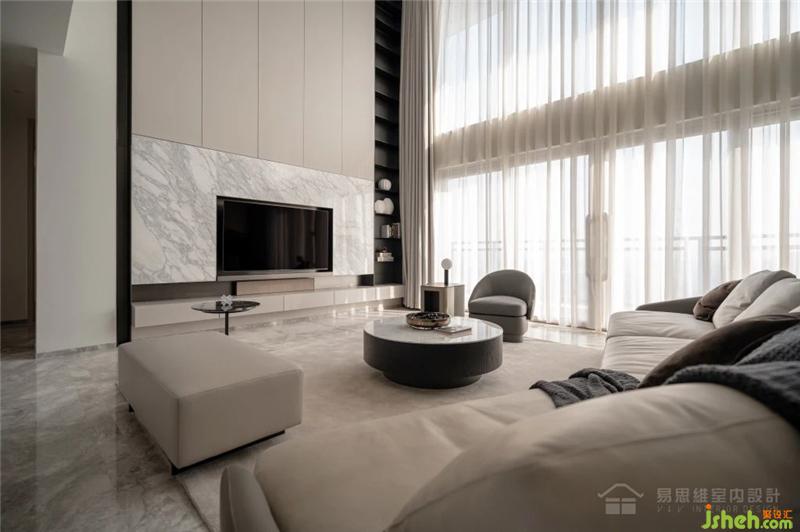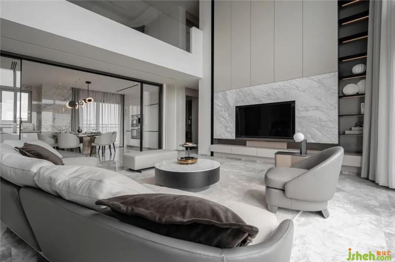 客廳大空間的層次感佛山現(xiàn)代復(fù)式設(shè)計(jì)