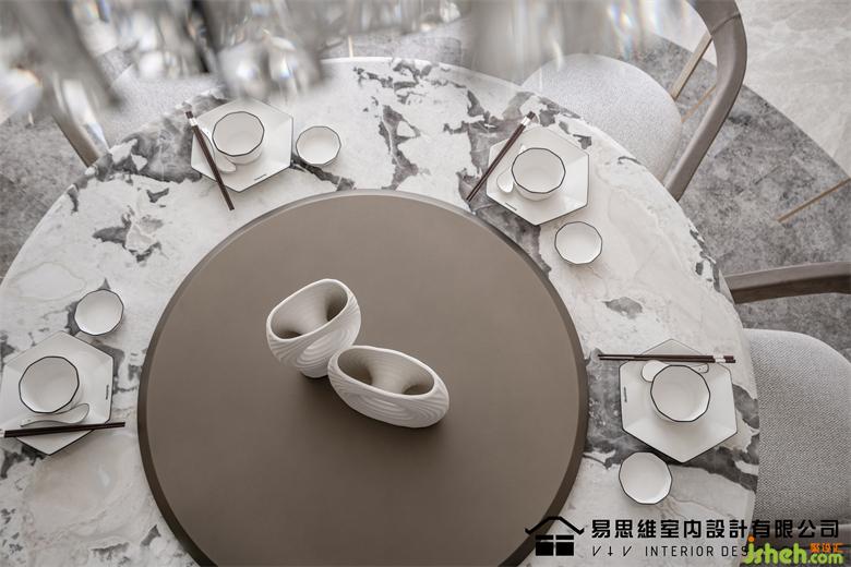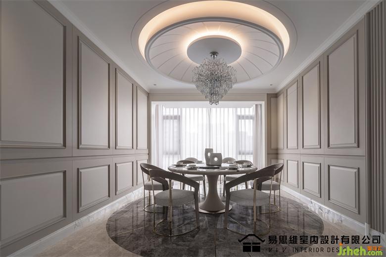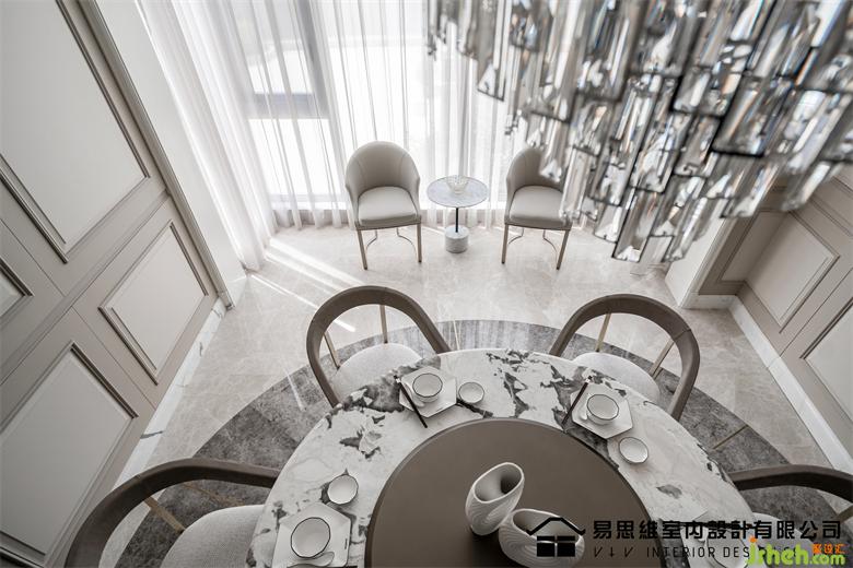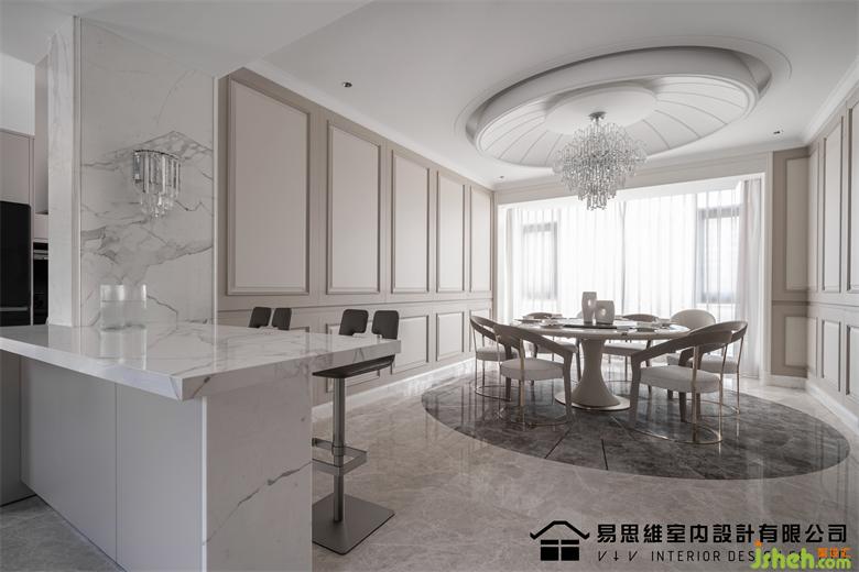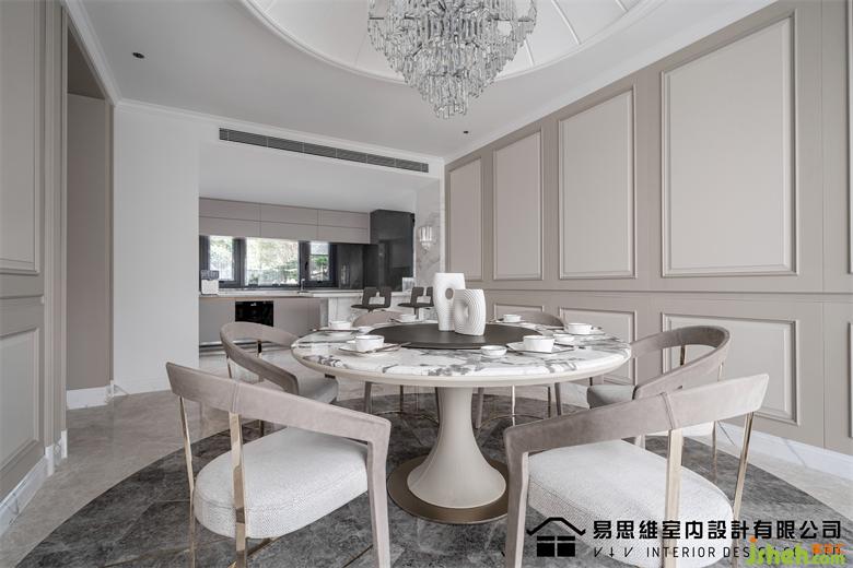 在經(jīng)典的造型與現(xiàn)代舒適感之間找到其節(jié)奏。別墅設(shè)計(jì)材質(zhì)輕微細(xì)膩的變化給空間帶來活力與藝術(shù)的展現(xiàn),低調(diào)有機(jī)的完美結(jié)合。穹頂天花與地面拼花形成時(shí)空的圍合,包裹著聚餐的歡愉時(shí)光,成為物理、感官、情緒相互相融的容器。