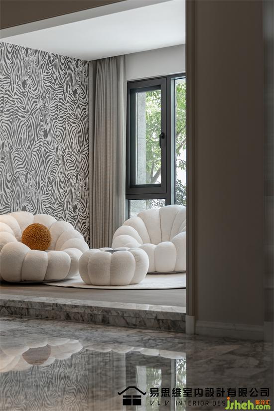 擁有家庭“第二空間”的起居室,是精神回歸的主場,蜿蜒流暢帶著女性獨(dú)特氣質(zhì)的半圍合沙發(fā),如同一個(gè)期待已久的擁抱,讓人卸下內(nèi)心的一切疲憊。別墅設(shè)計(jì)柔和而通透的光線摸觸著舒適溫和的面料,在空氣中產(chǎn)生細(xì)膩的呼吸感。在此,營造良好親子、情感交流的氛圍,在不經(jīng)意之間產(chǎn)生不同的值得珍惜的回憶與故事。