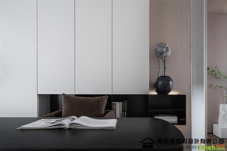 半開放式的設(shè)計擴大了空間的視覺,大片的落地采光玻璃門將采光無限引入。佛山家裝設(shè)計用大面積的淺灰調(diào)調(diào)和氛圍,地面暖色系的魚骨拼木地板成為視覺焦點,和諧而不張揚的和空間對話。場景中保留工作及休息兩種功能,亦是家人可以在此進行情感交流的場所。