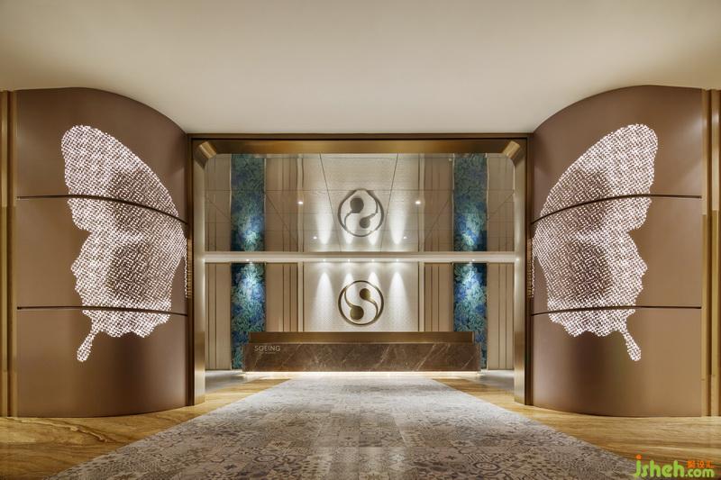 本案設計是與以現(xiàn)代和時尚的風格相結合,在旁邊世紀蓮體育館蓮花外形的相呼應之下,更能體現(xiàn)花和蝴蝶的主題概念,豐富了空間的視覺。