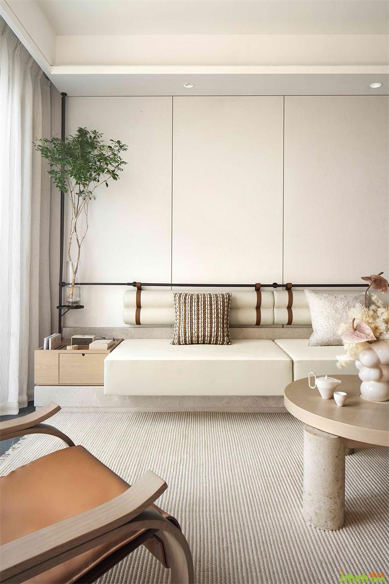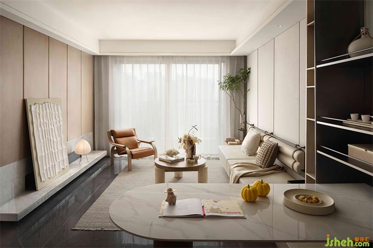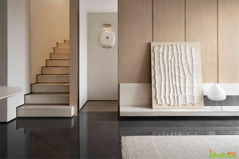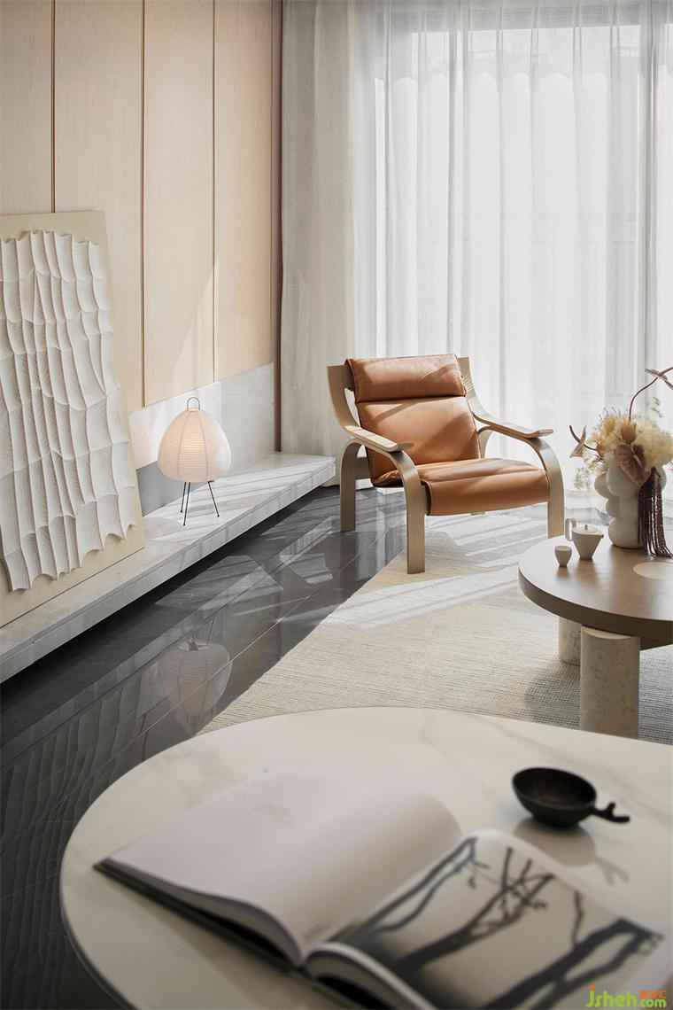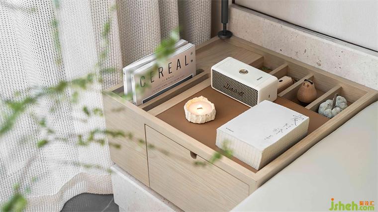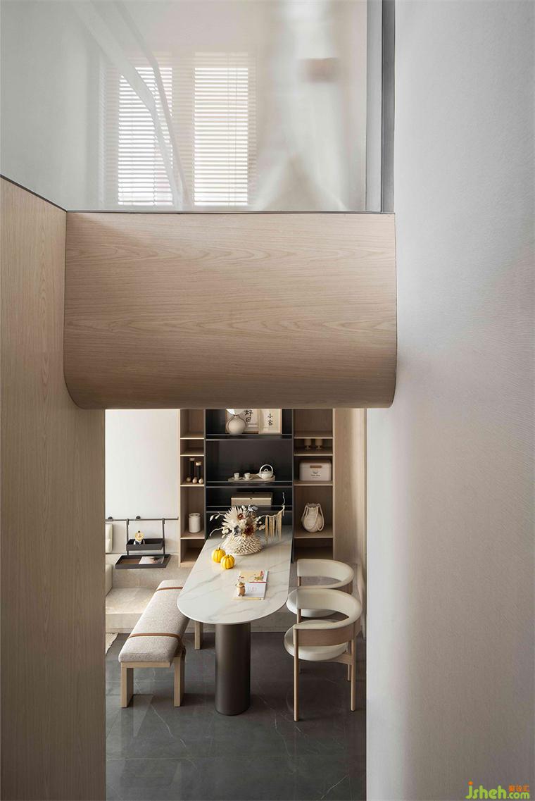 材料的不同紋理在居所中扮演著重要的角色,深圳共向設(shè)計淺黃色的木飾面和暖白色的亞麻織物。創(chuàng)造了一個溫暖且親密的空間氛圍,光線伴著秋風(fēng)可以自由的進(jìn)入室內(nèi)。讓室內(nèi)外之間形成無邊界的關(guān)系,使美學(xué)和功能于此達(dá)到了某種意義上的平衡。
