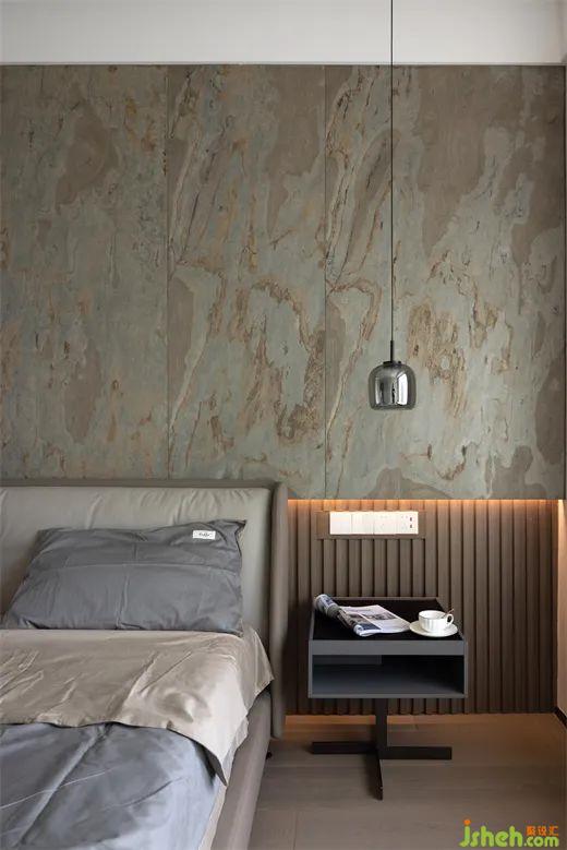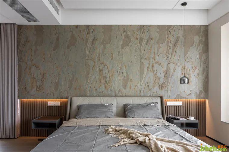 此外,臥室區(qū)域我們選用了一整面的巖板裝飾,搭配銀色金屬吊燈,既保持了臥室舒適溫馨的氛圍感,又點(diǎn)亮了臥室的整體風(fēng)格,簡約而不失綺華,質(zhì)樸又不失精致。