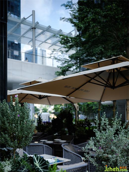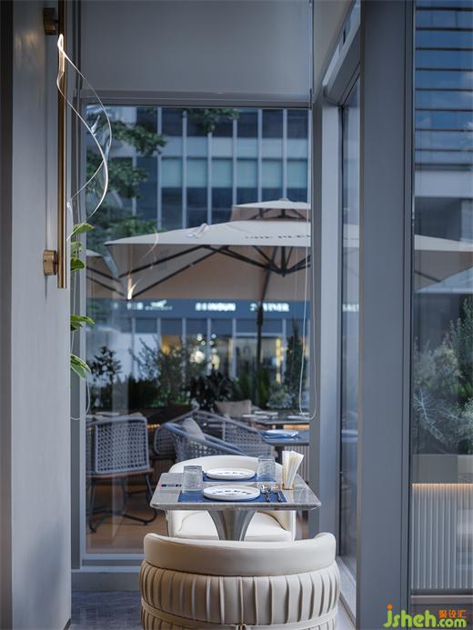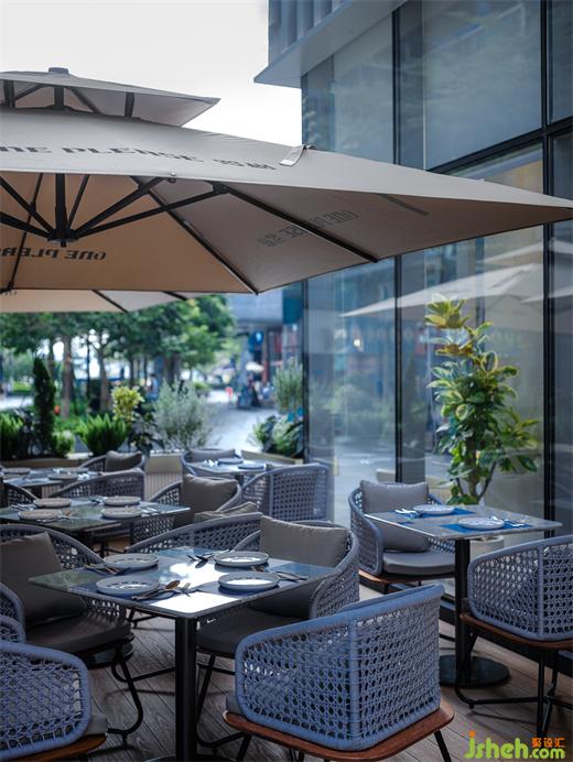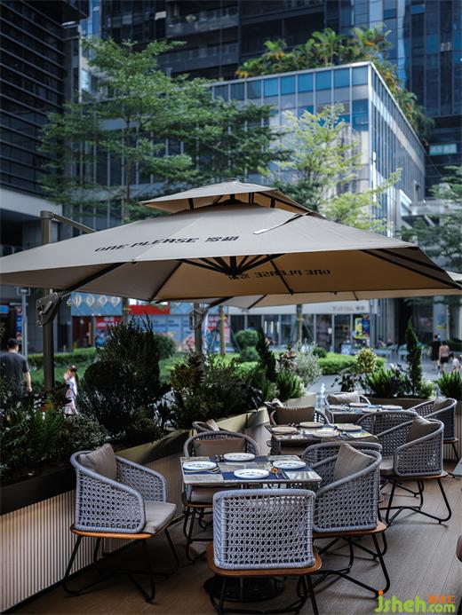 表面上習(xí)慣現(xiàn)代快節(jié)奏生活的都市人,何嘗不希望疲憊的身心能夠短暫棲息。深圳俄式餐吧設(shè)計(jì)綠意簇?fù)淼耐鈹[區(qū)旗幟鮮明地表達(dá)著空間的自然天性,日暮向晚,其中片刻,在自然舒緩的用餐氛圍中,享受珍貴的慢與寧?kù)o。